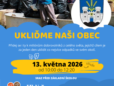 V rámci akce Ukliďme Česko dne 13. 4. od 10:00 do 12:20 hodin.